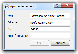 Pour ceux qui est de l'adresse, mettez l'adresse de notre Mumble : nolife-gaming.com